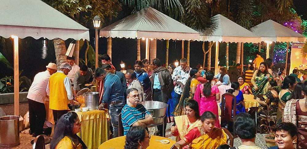 Celebrate without compromise — our venue is designed to impress. - Riverside / By the Ganges: A stunning view that elevates every event. - Spacious Indoor Area: Comfortably accommodates up to 800 guests. - Open-Air Courtyard: Ideal for evening receptions and open-sky weddings. - Customized Menu Engineering: Choose from Bengali, Indian, and international cuisines. - Warm Hospitality: Dedicated staff ensuring seamless execution. - Personalized Décor: Tailored themes for every celebration.